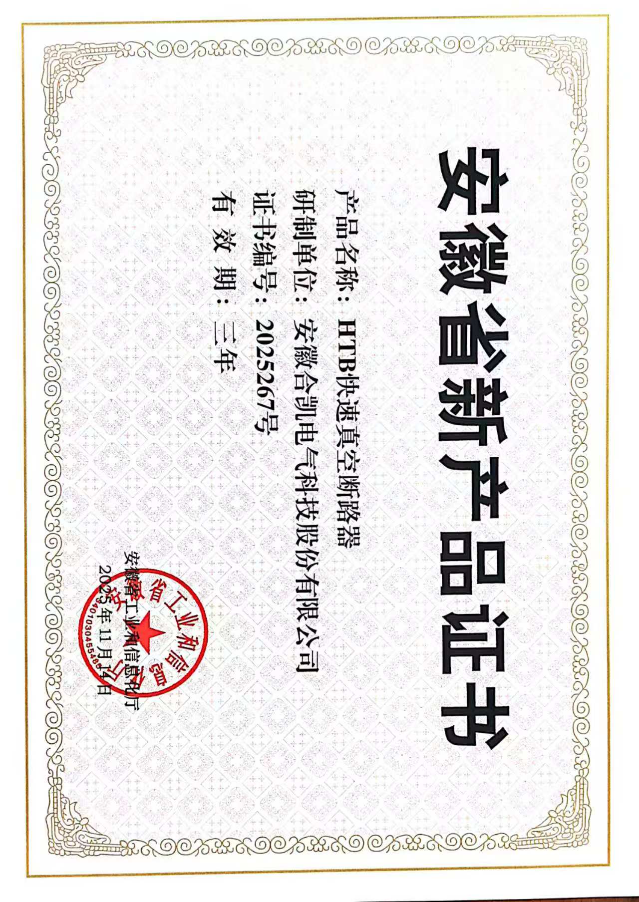 近日,今年会电气自主设计研发的2款新产品被安徽省工业和信息化厅评为“安徽省新产品”。其中一款HTB快速真空断路器,采用涡流斥力技术以及电容温度精确调控技术,实现了断路器的稳定可靠分合闸。