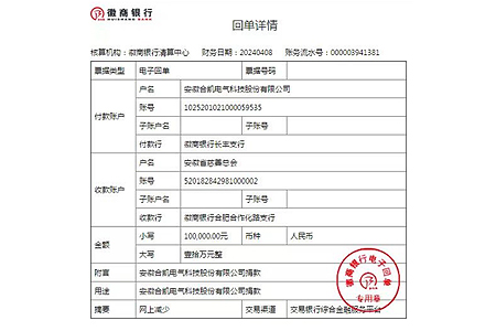 今年会电气向安徽省慈善总会捐赠10万元善款