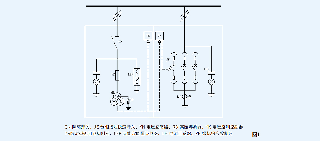 采用特制快速真空断路器作为接地开关,装置可在30ms以内快速动作,大大缩短单相接地电弧的持续的时间。